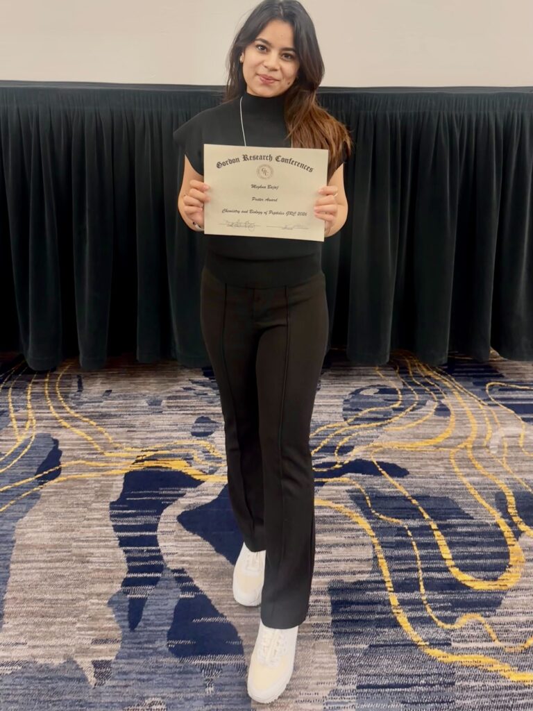 Last week, several C-GEM researchers attended the 2026 Chemistry and Biology of Peptides Gordon Research Conference. Professors Christopher Alabi (Senior Investigator, Cornell) and Abhishek Chatterjee (Senior Investigator, Boston College) both presented a seminar on their most recent, cutting-edge C-GEM related research. Taylor Dover (graduate student, Yale) and Alex Solivan (graduate student, UC Berkeley) each presented their research at a poster session, as did Meghna Bajaj (graduate student, Cornell), who won a poster award. Congratulations!